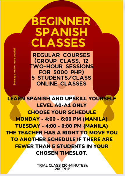Mondays - 4:00-6:00 PM (Philippines)/9:00 - 11:00 AM (Spain)